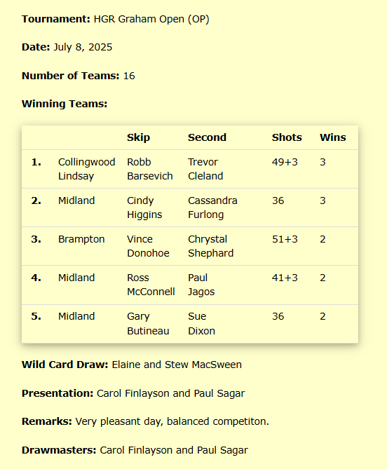 OLBA CLUB TOURNAMENT WINNERS
