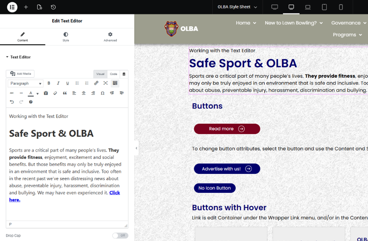 - In a new browser Tab, cut and paste this url: https://olba.ca/olba-style-sheet/